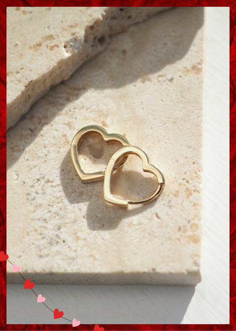 Looking for a low key flex to showcase your love of hearts? These are the earrings. This is them. These 14k yellow gold heart-shaped huggies are timeless and last forever. These hoop earrings are...