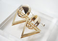 Inspired by our love of architecture and sharp lines, these scalene earrings are bold, strong, and intricately made. The triangles are fun are very on trend right now. Each earring measures 22mm wide x 33mm tall. The triangle is encapsulated, free floating and ensnared by the framework, ultimately shifting your perspective of how 3d printing can work.