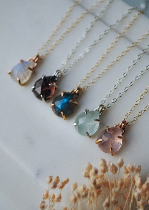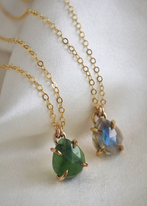 This claw-set gemstone necklace is stunning. You won't want to take it off. It is simple enough to wear with a crew neck shirt, or you can layer it with shorter necklaces and...