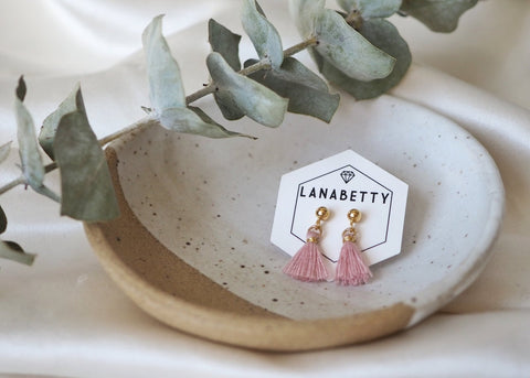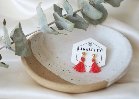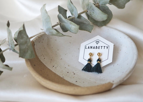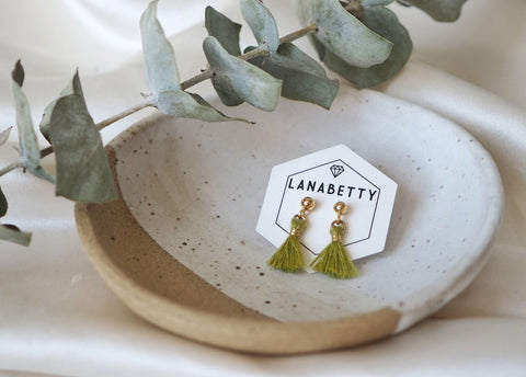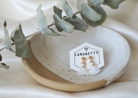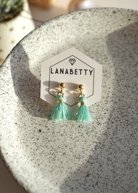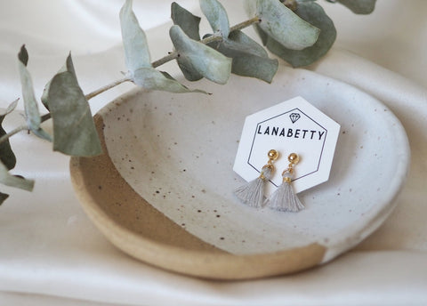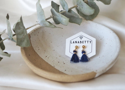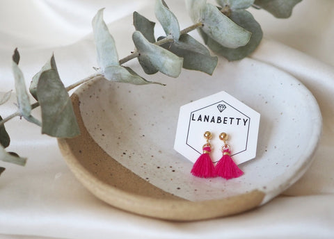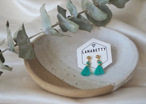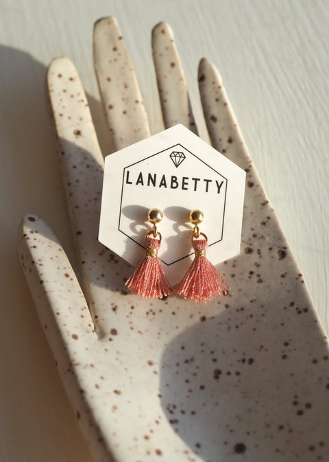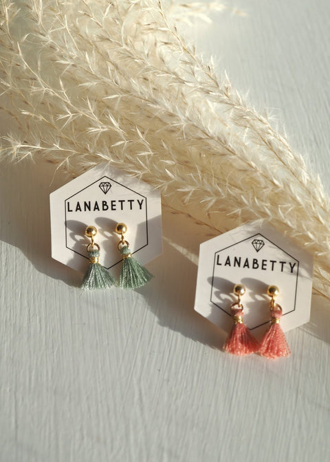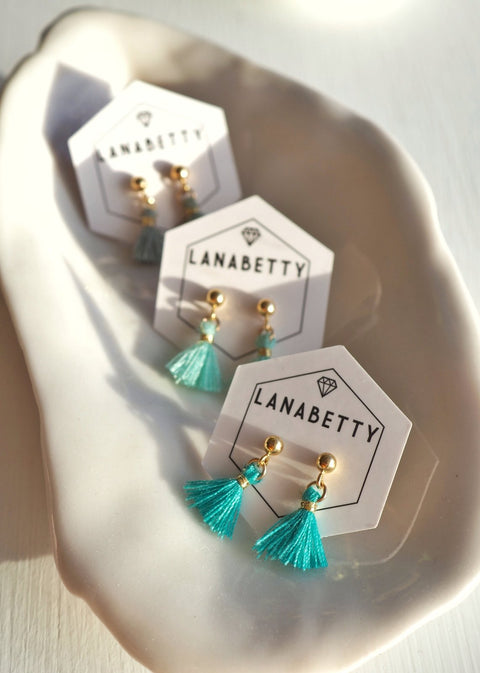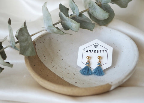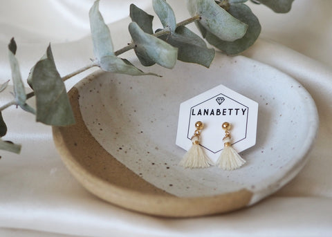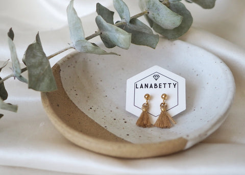 Introducing our utopia Tassel earrings - finished with a tiny handspun cotton tassel, delicately woven and hung on gold-filled studs. They're hypoallergenic, fresh, and fun to wear. Tassels are made...