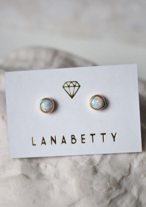 These are the cutest, perfectly simple stud earrings you will ever need. 14k gold and stunning little opals. Earrings measure approximately 5 mm across. These earrings are perfect for those...