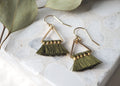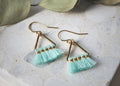 Fortune Triangle Tassel earrings - finished with handspun cotton tassels, delicately woven and hung on 14k gold filled hooks. They're hypoallergenic, fresh, and fun to wear.