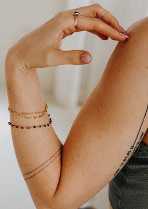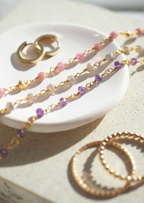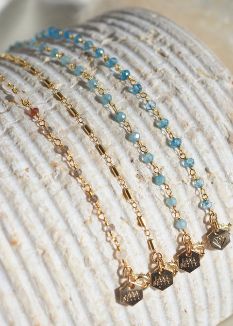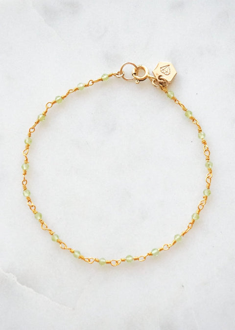 You're going to love this dainty beaded gemstone chain bracelet. Perfect for wearing alone or layered. Available in several semi-precious gemstones, wrapped with gold-fill. Each bracelet is made to order and,...