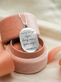 This double-sided oval pendant necklace celebrates the essence of resilience and regal strength, featuring original artwork by LanaBetty. At its heart is a powerful tiger, mid-stride, surrounded by celestial stars and laurel branches symbolizing victory and triumph. This piece invites you to embrace your inner fierceness and step boldly into your power.