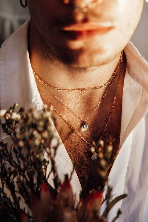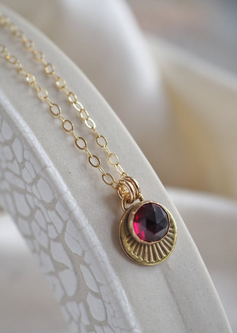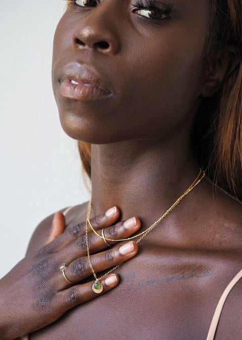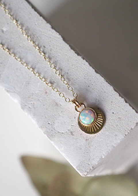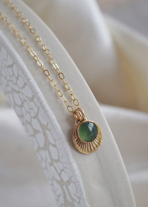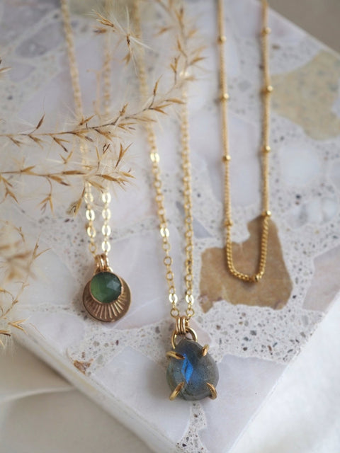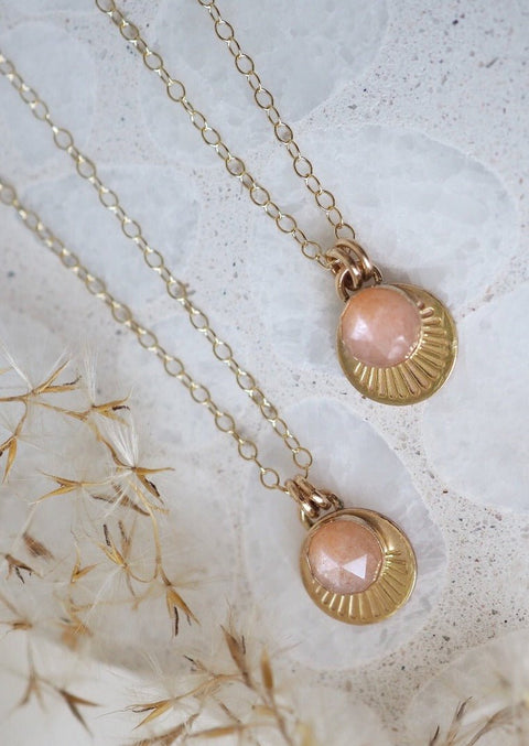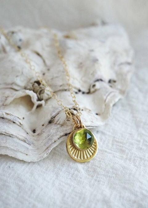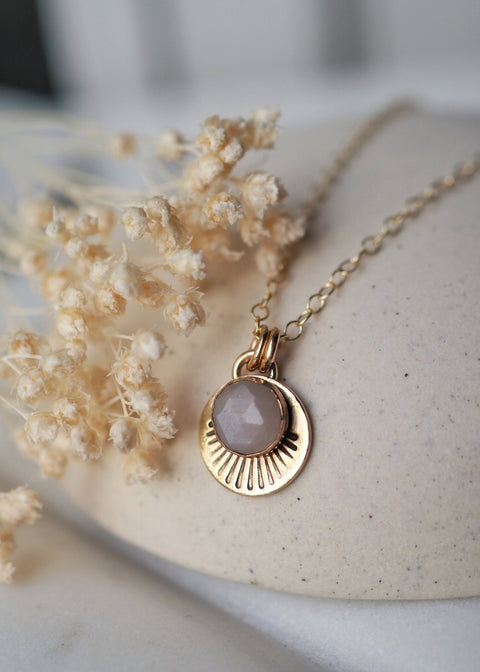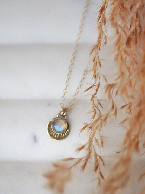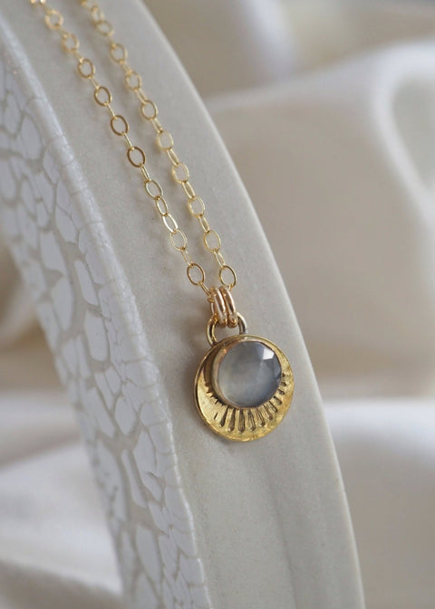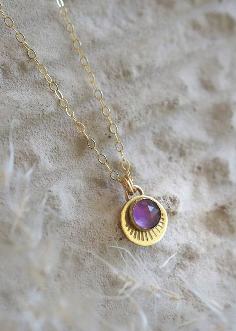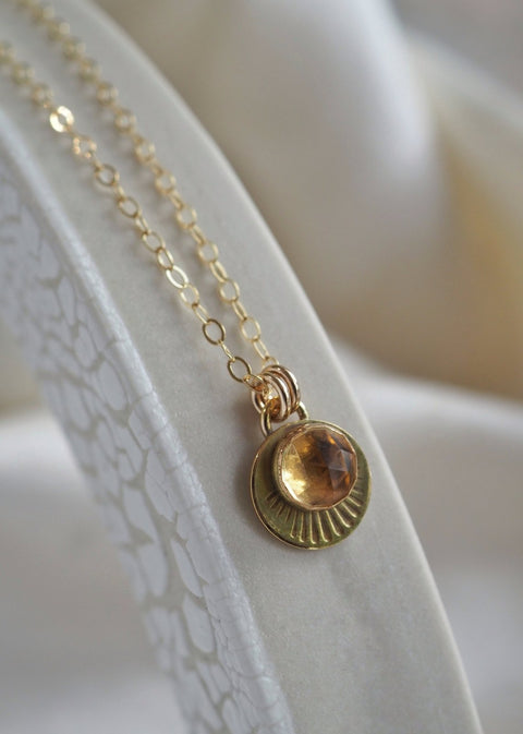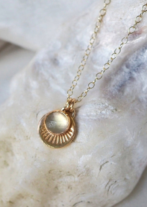 The Horizon Necklace features a 6mm gemstone paired with a hand-stamped sun disc, symbolizing new beginnings, hope, and forward motion. Handcrafted in silver or gold-filled, this piece invites you to...