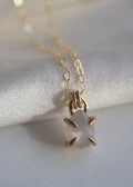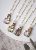 This claw-set gemstone necklace is stunning. You won't want to take it off. It is simple enough to wear with a crew neck shirt, or you can layer it with shorter necklaces and your favorite summer tops.