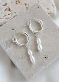 Gravity Hoops - Dangle Pearl Earrings (13mm) - Silver