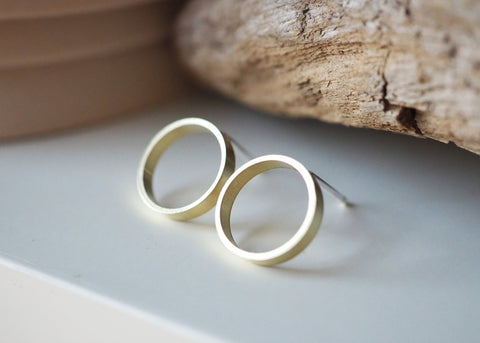 Little brass circle earrings are geometric and minimalistic stud earrings. These little earrings are perfect to wear day and night. Finished with sterling silver posts. Measure about 8mm wide. Dimensions. Approximately 10mm. Laser cut. With...